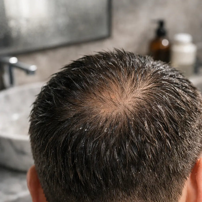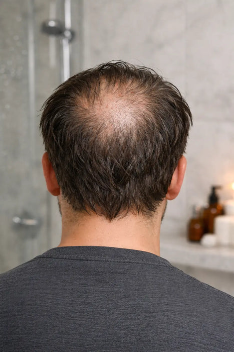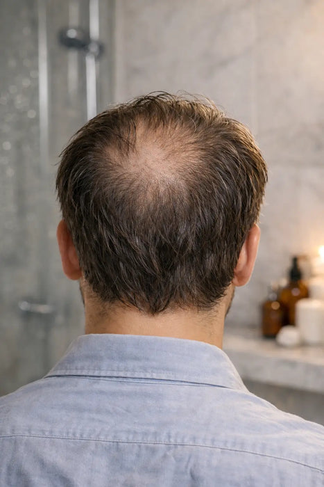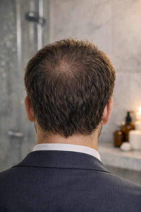 Para hombres que notan menor densidad en entradas o coronilla y quieren una solución moderna, efectiva y fácil de usar.